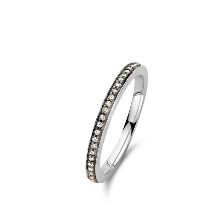 Ischia Basics ring in 18K white gold with brown diamonds.