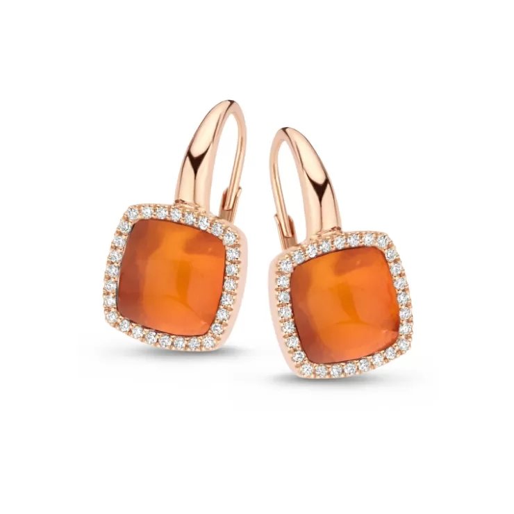 Pantelleria earrings 18 kt rose gold set with quartz on orange agate + diamonds.