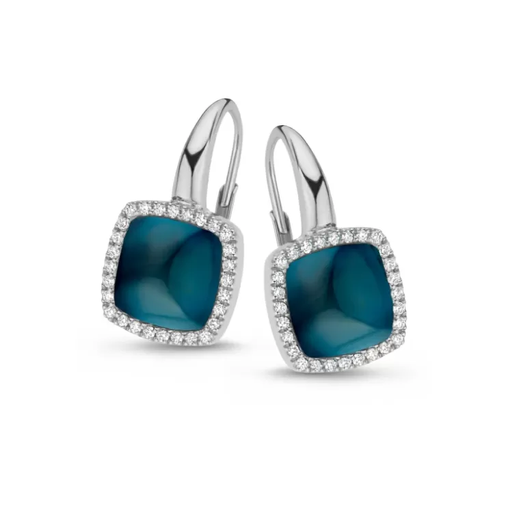 Pantelleria earrings in 18K white gold, London Blue topaz on MOP and diamonds.