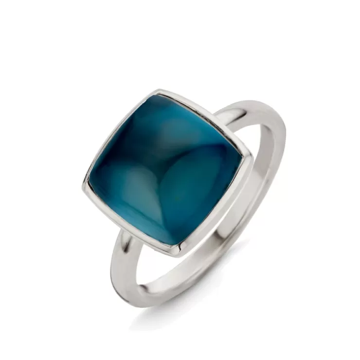 Pantelleria ring in 18K white gold with London Blue topaz on MOP.