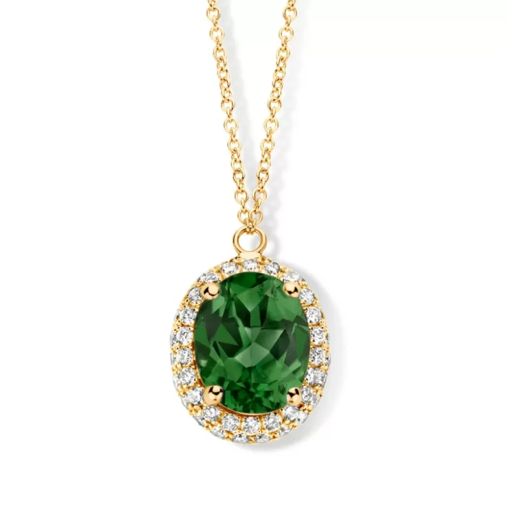 Etna necklace in 18K yellow gold with green tourmaline and diamonds.