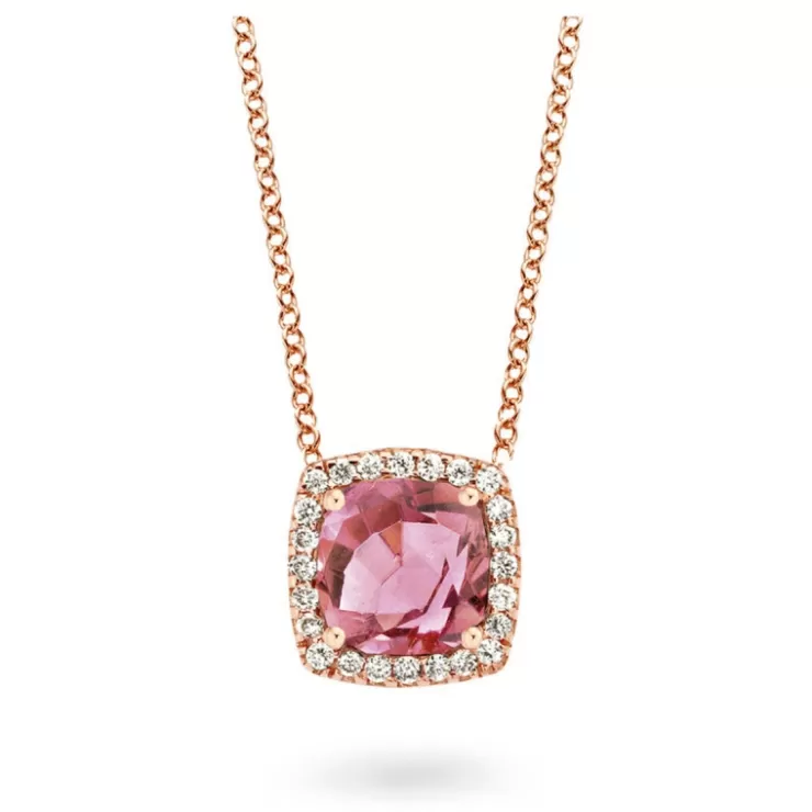 Etna necklace in 18K rose gold with pink tourmaline and diamonds.
