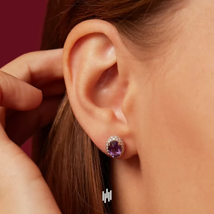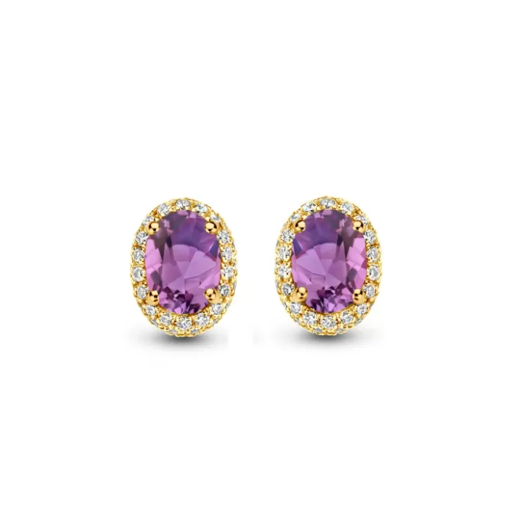 Etna earrings in 18K yellow gold with amethyst and diamonds.