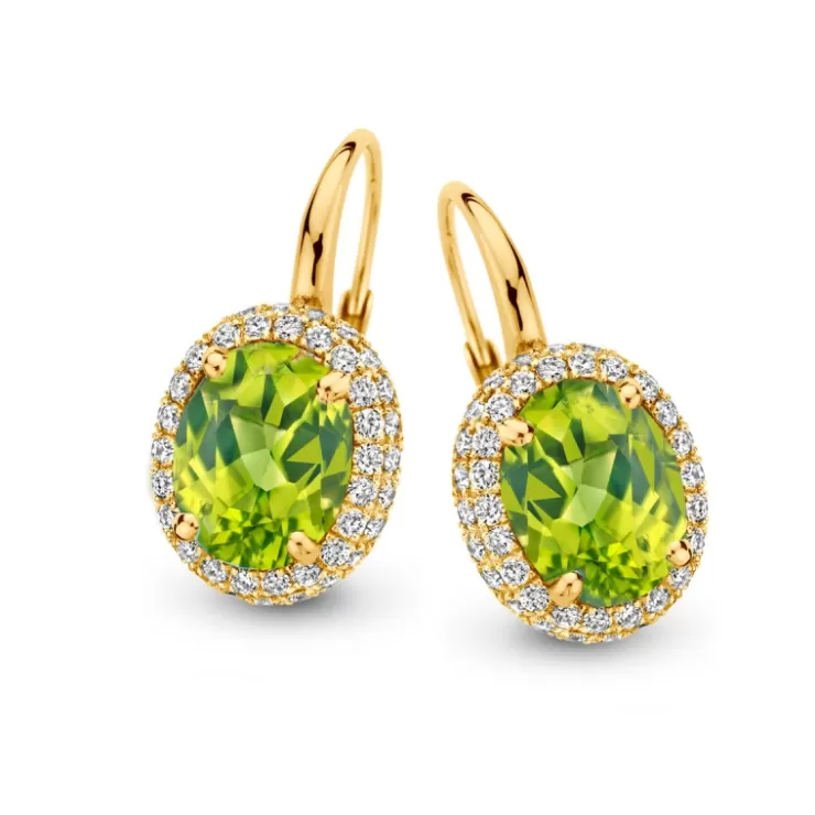 Etna earrings in 18K yellow gold with Peridot and diamonds.