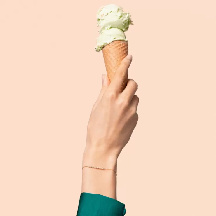Ischia Basics bracelet in 18K yellow gold with diamonds.
