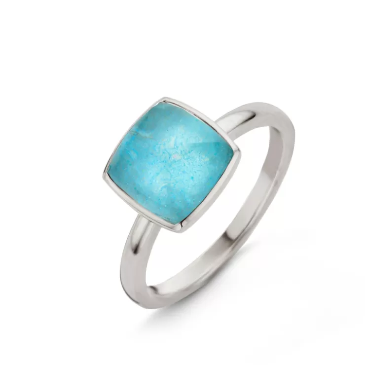 Pantelleria ring in 18K white gold set with quartz on amazonite.