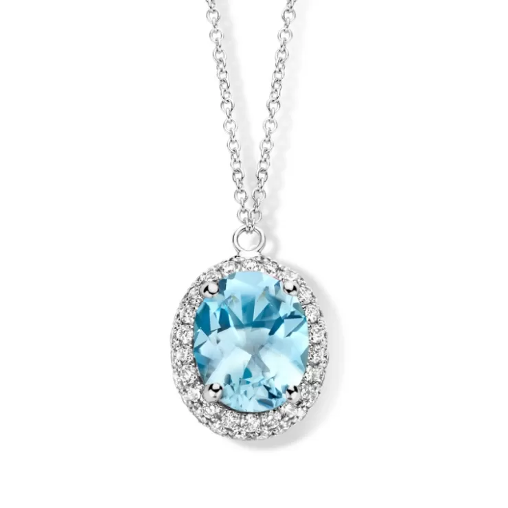 Etna necklace in 18K white gold with Sky Blue topaz and diamonds.