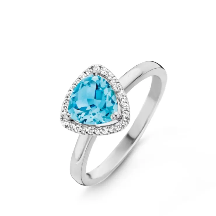 Etna ring in 18K white gold with Swiss Blue topaz and diamonds.
