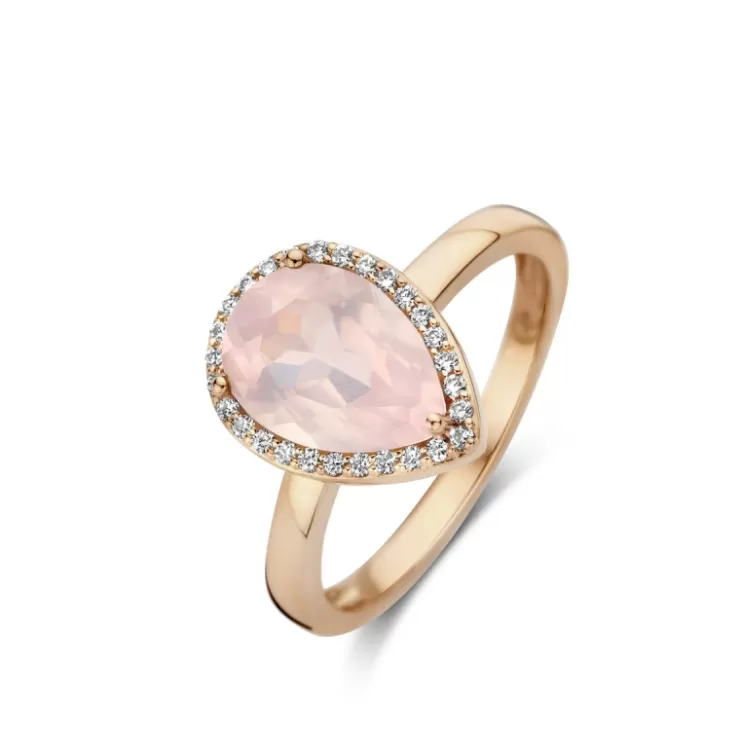 Etna ring in 18K rose gold with pink quartz and diamonds.