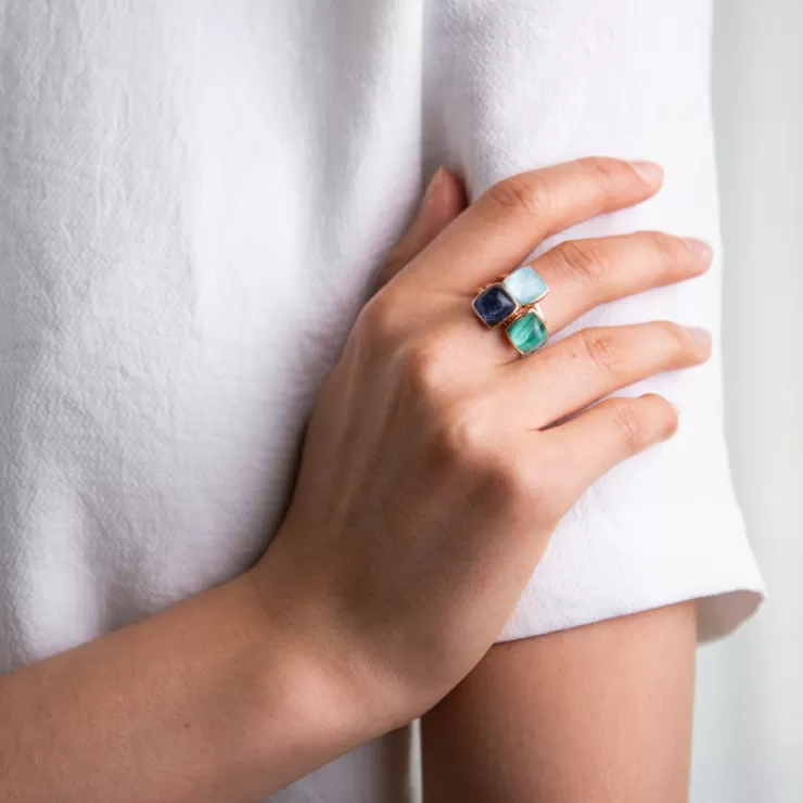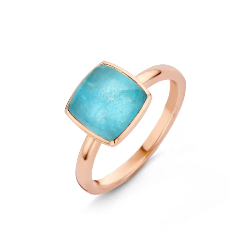 Pantelleria pink gold 750/1000 ring set with quartz on amazonite.