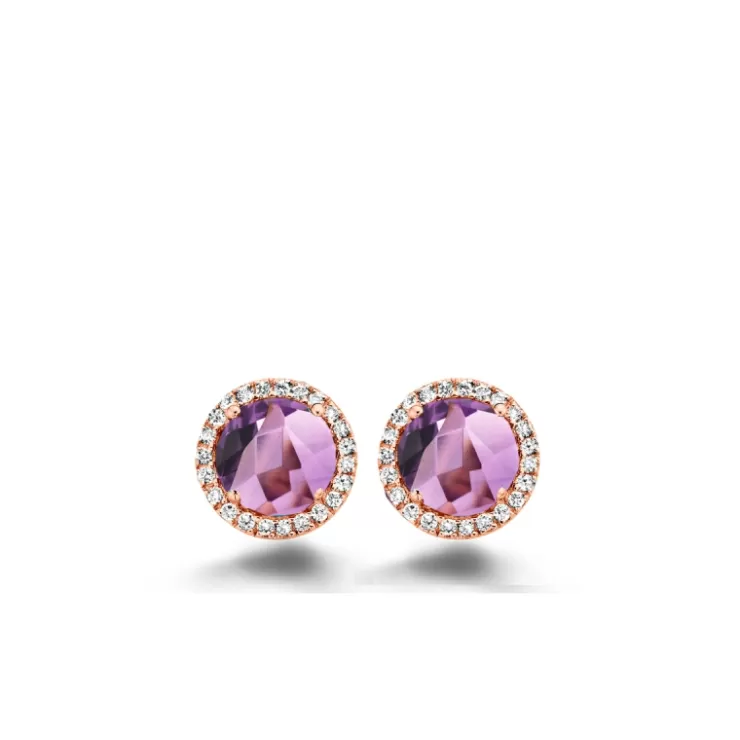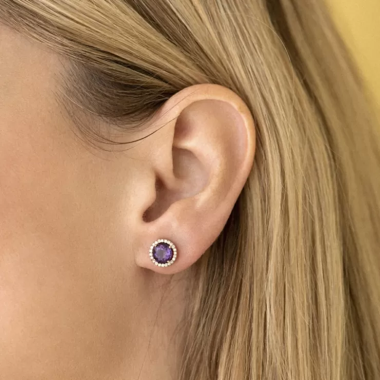 Etna earrings in 18K rose gold with amethyst and diamonds.