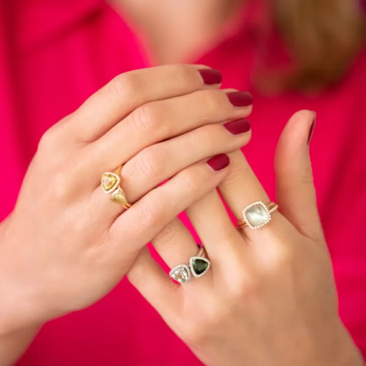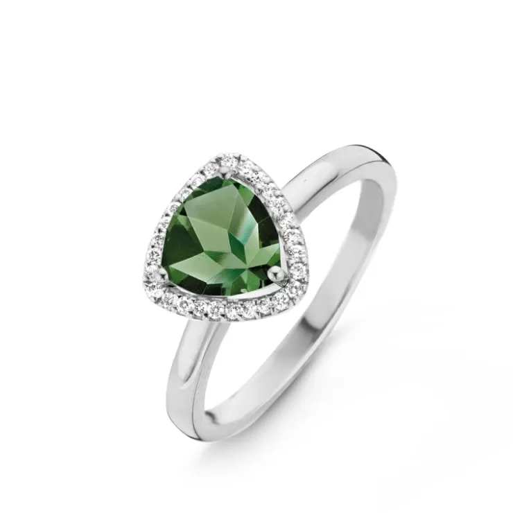 Etna ring in 18K white gold with green tourmaline and diamonds.