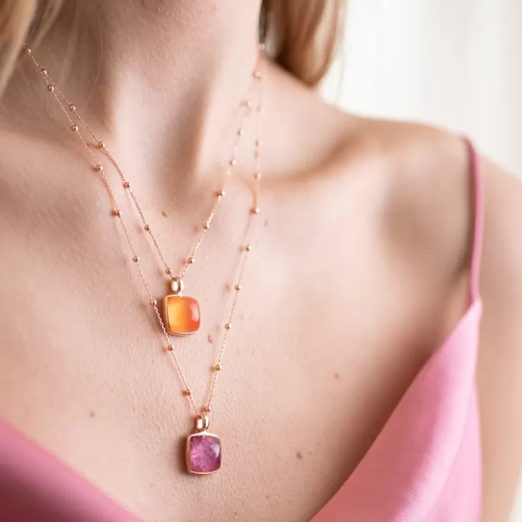 Pantelleria pendant in 18K rose gold set with quartz on orange agate.
