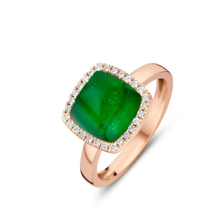 Pantelleria ring in 18 kt rose gold with quartz and emerald on MOP and diamonds.
