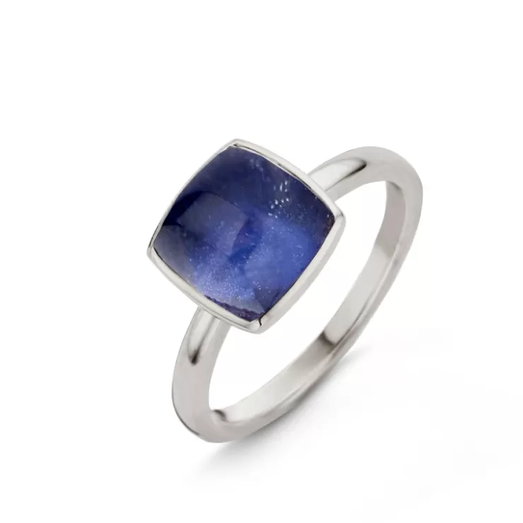 Pantelleria ring in 18K white gold set with quartz on sodalite.