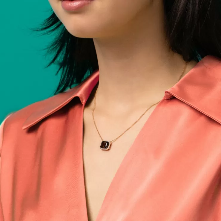 Etna necklace in 18K rose gold with smokey quartz and diamonds.