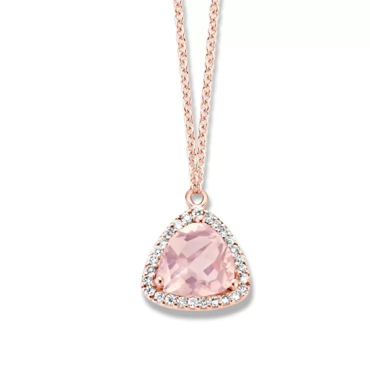 Etna necklace in 18K rose gold with pink quartz and diamonds.