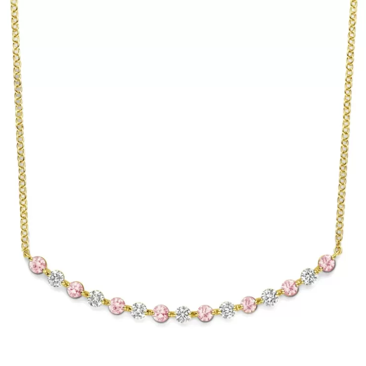 Ischia Basics necklace in 18K yellow gold with pink sapphire and diamonds.