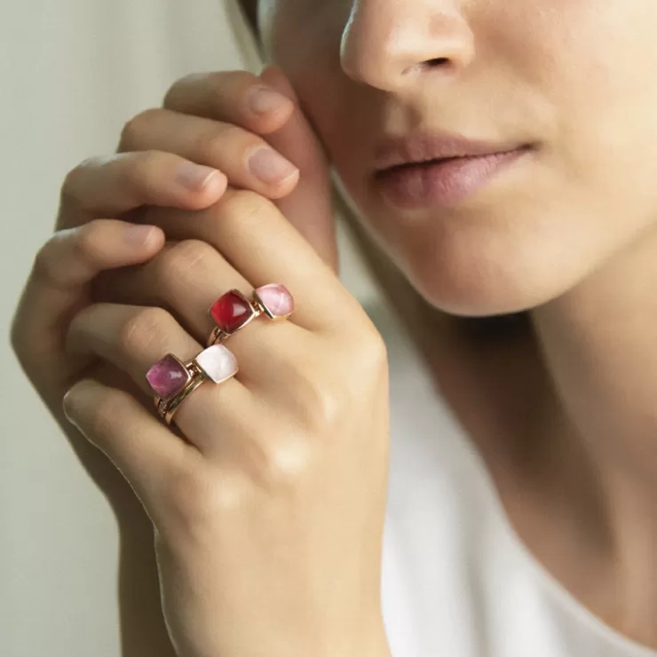 Pantelleria ring in 18K rose gold with pink quartz on MOP.
