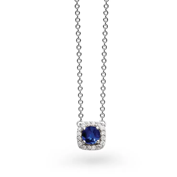 Salina necklace in 18K white gold with blue sapphire and diamonds.